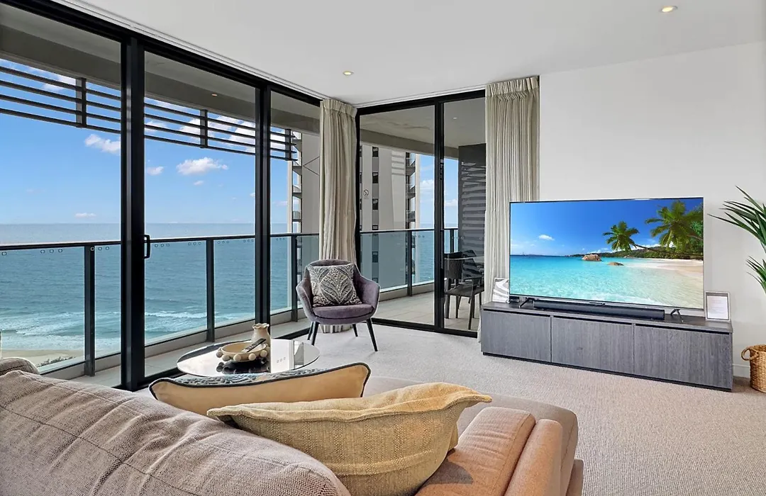 El Apartamento Luxury Oceanview Retreat Oracle Tower 1 Level 24 cuenta con un balcón y un vestidor, y comodidades como climatizador. Este alojamiento incluye ducha a ras de suelo y también inodoro separado para tu comodidad. También encontrarás secador de pelo y toallas de baño.